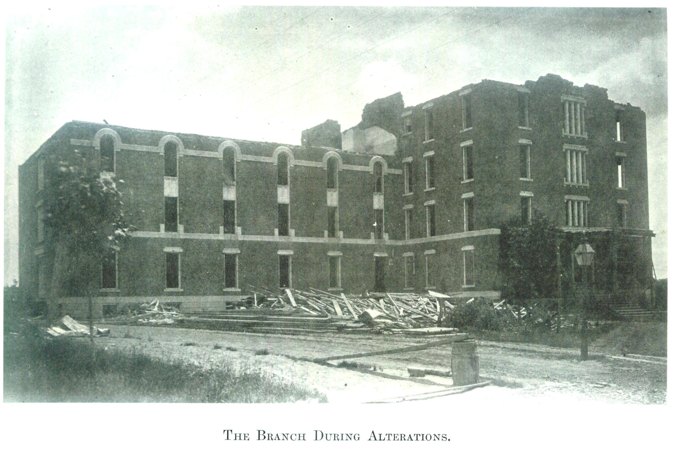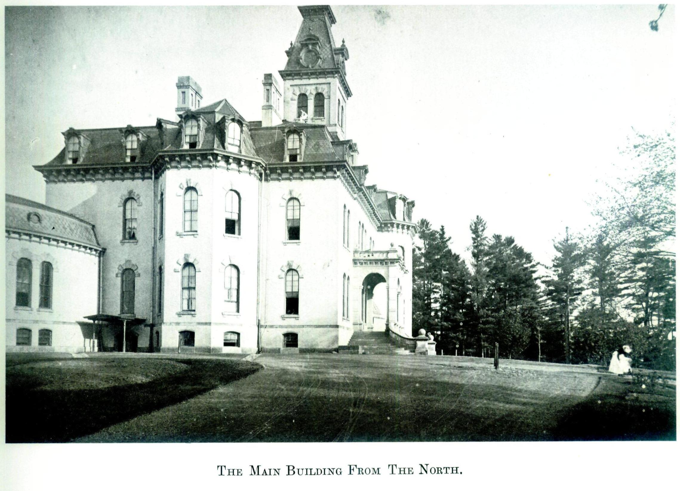 Excepted are the two views in 1869 on the main building in the process of erection taken by Mr. C.V.D. Cornell, photographers, of Waterloo. The front view was loaned by the Willard Asylum Museum, and the rear view by Michael F. Perry, of Ovid. – W.E. Morrison & Co., Ovid, N.Y.”
