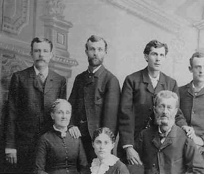 Seated are Jarvis Mudge and Deborah Ann Putman. Standing are sons: Garret H.; Richard T. married Margaret A. Orr ; Charles E. married Lydia A. Barber and Elizabeth Mosher; and Marcus H. (I do not know who is who). Seated is daugher Minnie Estella who married Francis McCabe.